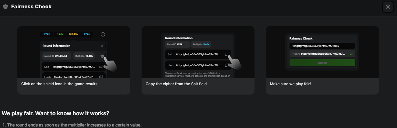 Legitimate platforms provide provably fair verification tools that allow you to check the randomness of game results. I regularly use these tools to verify game integrity. The system uses cryptographic hash functions to generate verifiable crash points that can’t be manipulated after betting begins. Look for the “Provably Fair” or “Verify” option in the game interface.